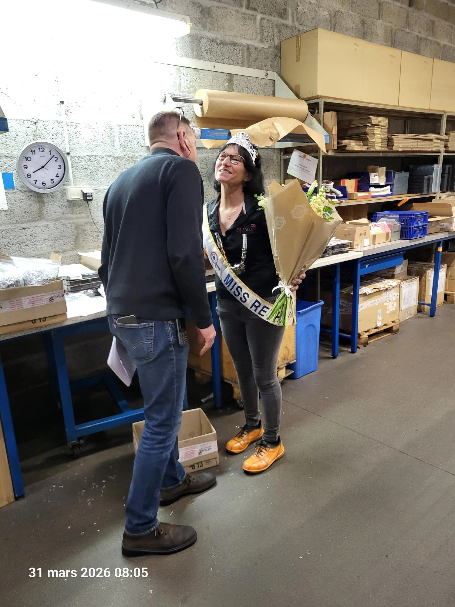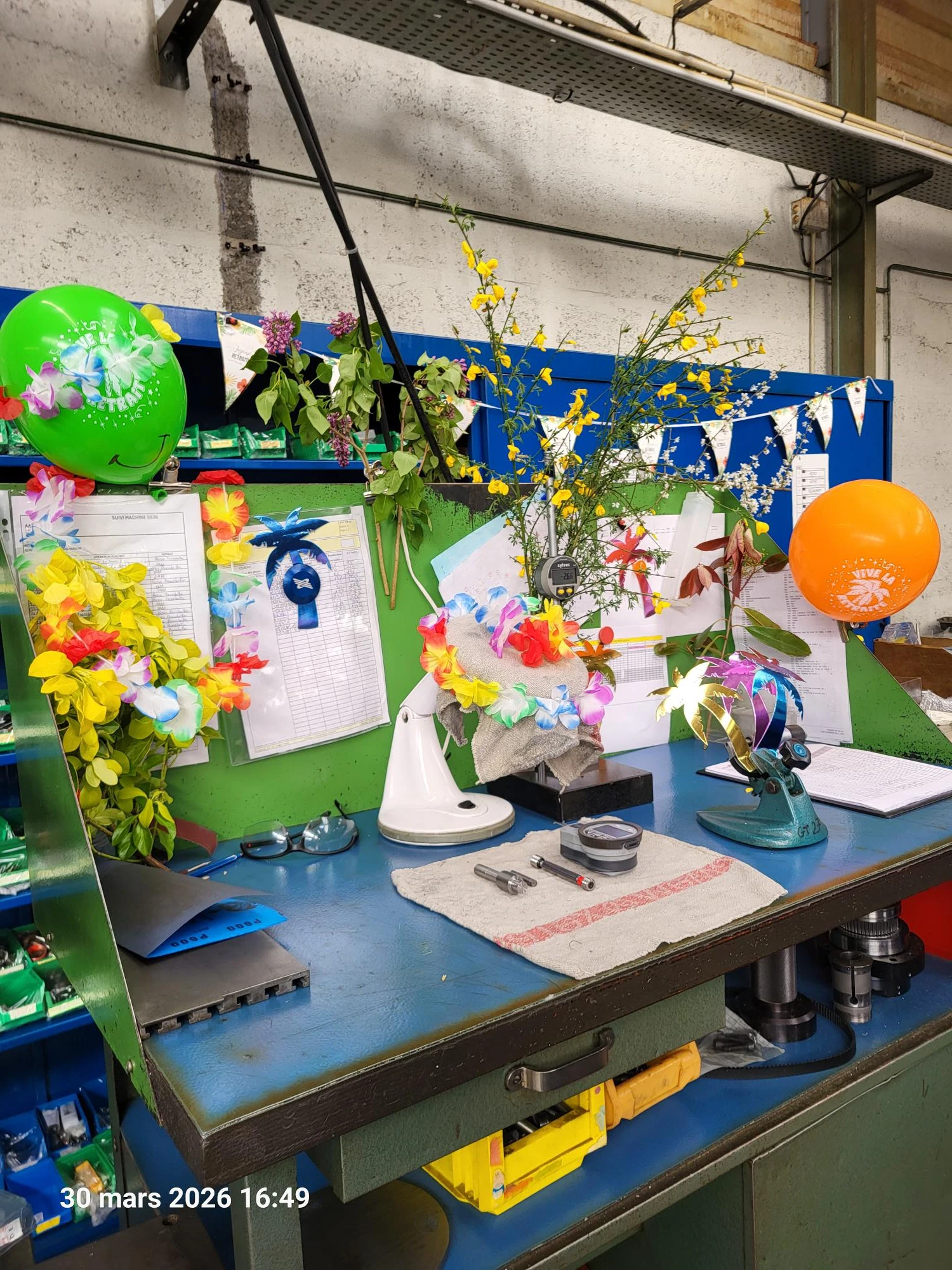 Maryline vit son dernier jour de travail en tant qu’opératrice en usinage ce mardi 31 mars 2026. Demain elle sera en congés et le 01/08/2026 en retraite.